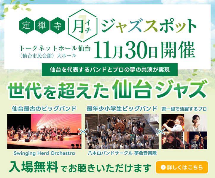 特に仙台は、ジャズが歴史的にも深い関わりのある地域です。ジャズが地域特色となることを目指して活動しております。