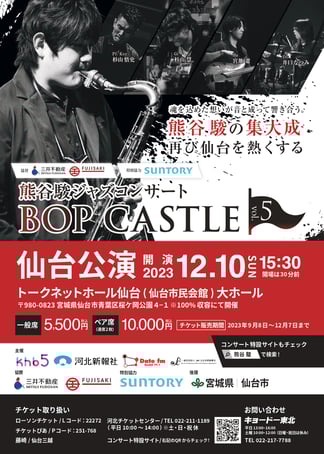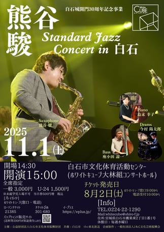 白石城開門30周年記念事業として開催された「熊谷駿 Standard Jazz Concert in 白石」 において、企画協力をさせていただきました。
