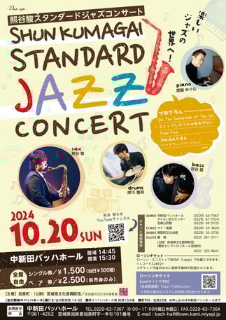 中新田バッハホールにて開催された「熊谷駿 スタンダードジャズコンサート」 において、企画協力をさせていただきました。パイプオルガンの響きから幕を開けるオープニングを皮切りに、誰もが一度は耳にしたことのあるジャズのスタンダードナンバーを中心に構成。