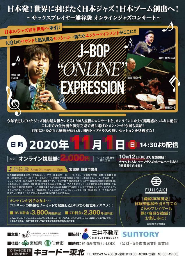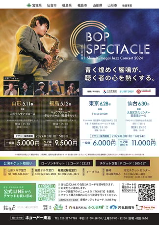 経済産業省コンテンツ海外展開促進・基盤強化事業費補助金採択事業として開催しました。初めての福島山形の開催ではございましたが熱いジャズファンから声援が上がるほどの熱い公演となりました。