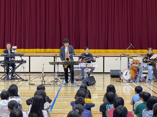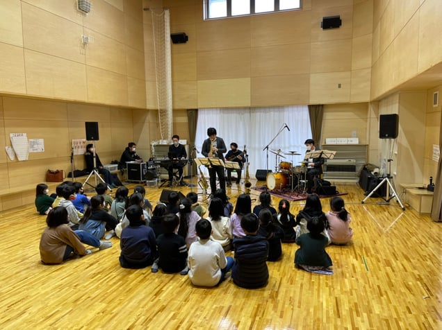 仙台市内の小学校にて子供たちのリクエストから構成される「リクエストコンサート」を開催いたしました。高学年を中心に流行りの楽曲からジャズの楽しさレクチャーなど、手拍子も上がり楽しんで頂き終演しました。