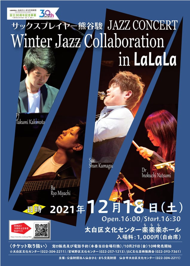 仙台ひと・まち交流財団設立30周年記念事業として、サックスプレイヤー熊谷駿 JAZZ CONCERT「Winter Jazz Collaboration in LaLaLa」を開催。